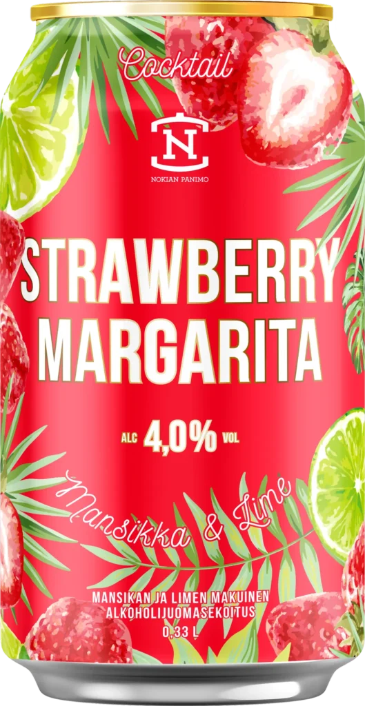 Kesän maku aikuisille huulille. Valmiiksi sekoitettu, 4,0%:nen mansikkamargarita. Strawberry Margarita Cocktailin raaka-ainevalinnoissa on korostettu runsasta aitojen asioiden arvostusta. Mansikan, sitruunan ja limen herkullinen yhdistelmä.