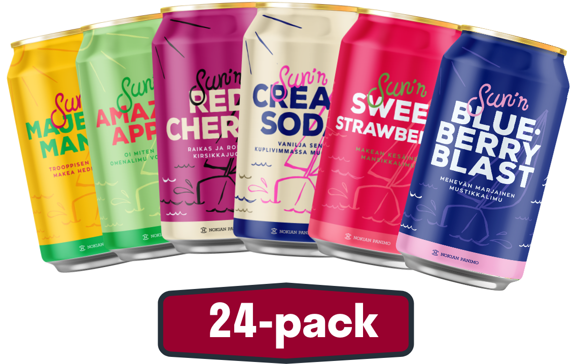 Yleisön pyynnöstä teimme tuotteen josta löytyy kuusi erilaista Sun’n makua! Myynnissä rajoitetun ajan. Laatikosta löytyvät seuraavat tuotteet:
